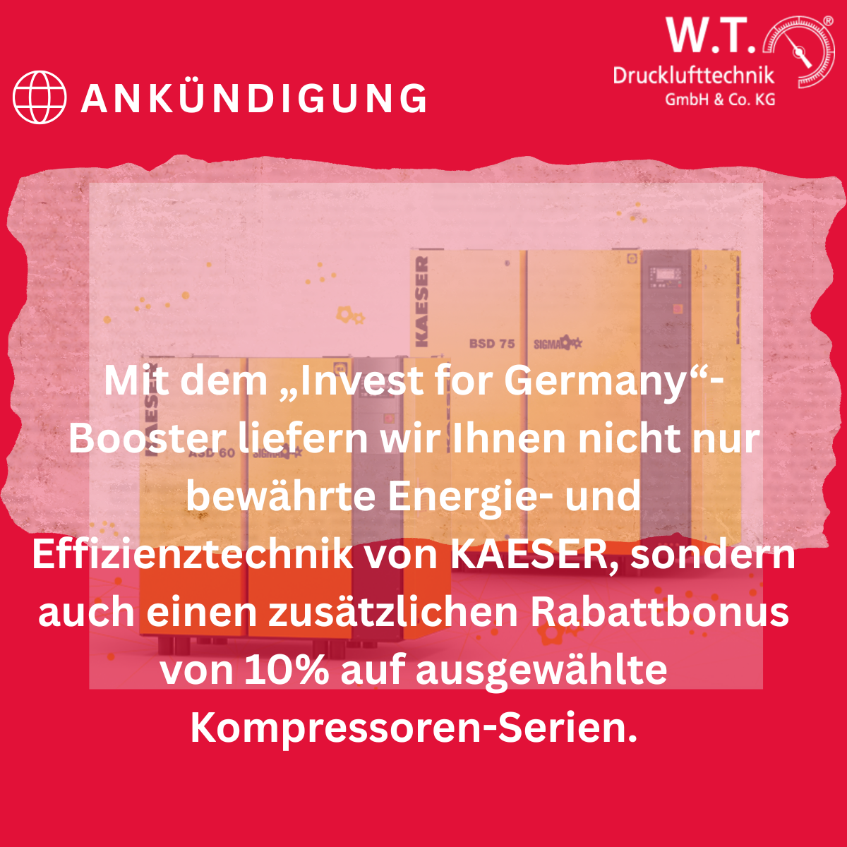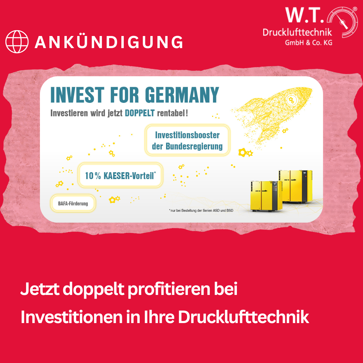 Jetzt doppelt profitieren: Invest for Germany – Ihr Booster für moderne Drucklufttechnik!