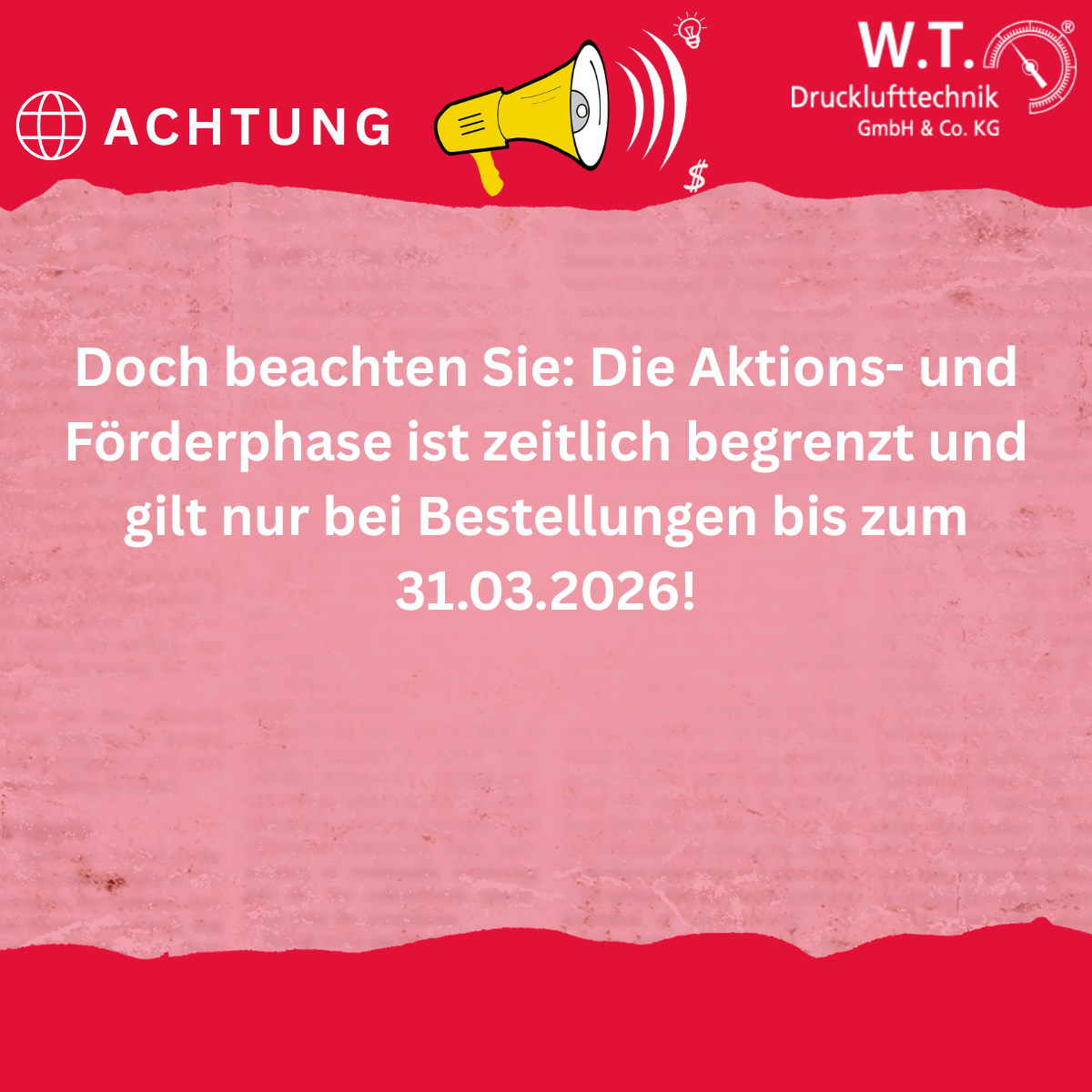Die Aktion läuft nur bis zum 31.03.2026 – sichern Sie sich frühzeitig maximale Vorteile und modernisieren Sie Ihre Druckluftversorgung auf höchstem Effizienz- und Qualitätsniveau.