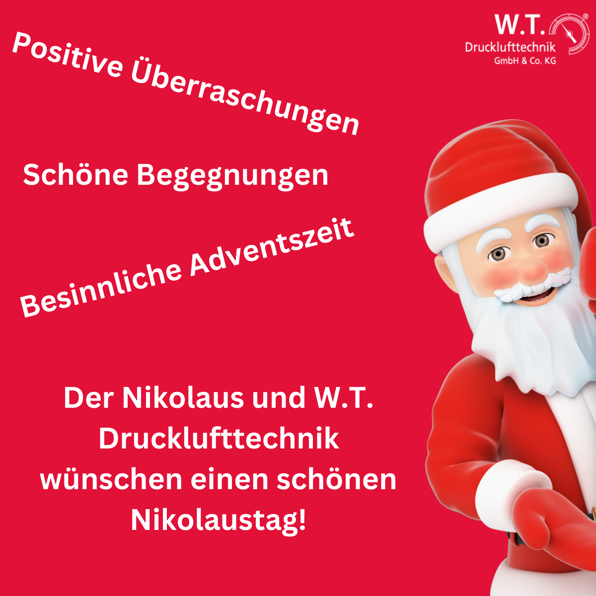 W.T. Drucklufttechnik wünscht einen wunderbaren Nikolaustag – mit frischer Druckluft, guter Stimmung und vielen positiven Überraschungen!