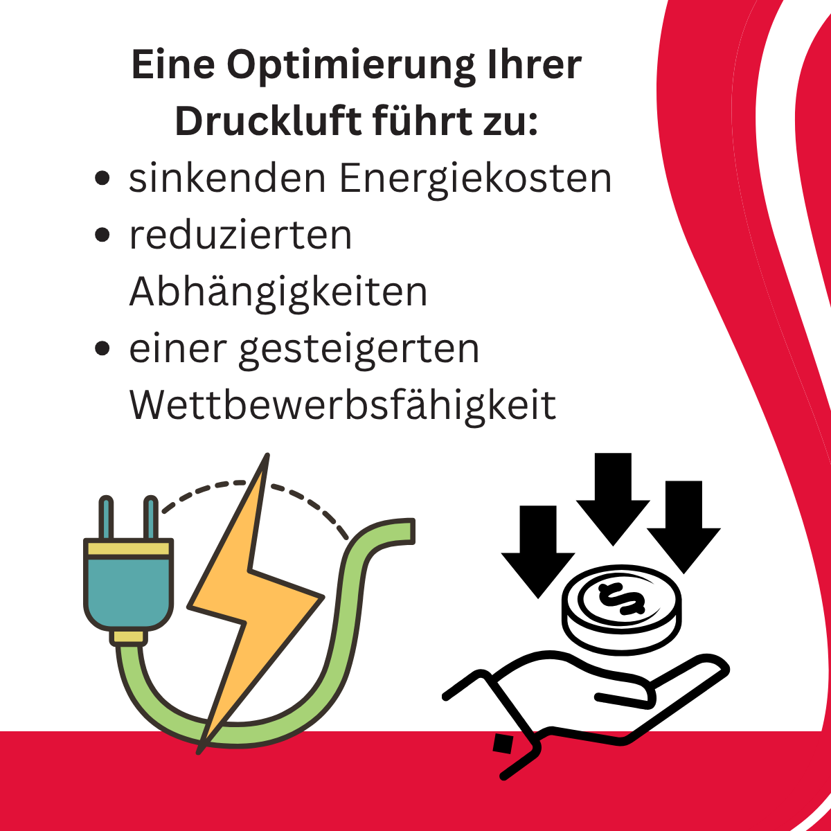 Besonders im Bereich Druckluft schlummert enormes Einsparpotenzial – von Wärmerückgewinnung über Leckagemanagement bis hin zu Effizienztechnologien. In unserem Slider zeigen wir, wie Sie mit gezielten Maßnahmen nicht nur Energie und Kosten sparen, sondern auch CO₂-Emissionen reduzieren können.