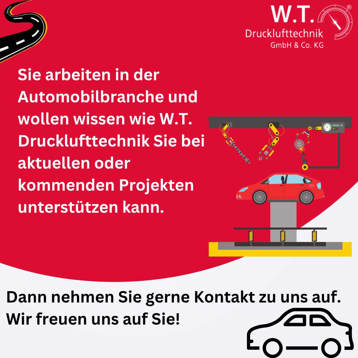 Du arbeitest in der Automobilbranche und möchtest wissen, wie W.T. Drucklufttechnik Dein Projekt unterstützen kann?